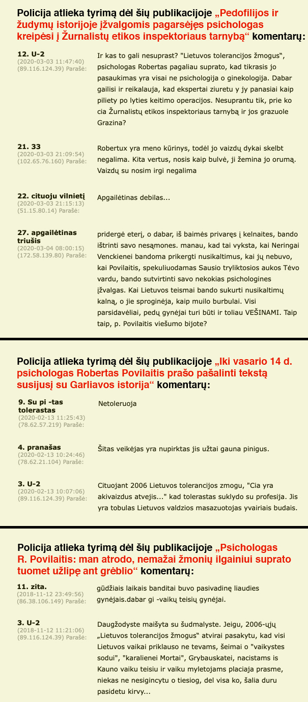 Ekspertai.eu policiją taip pat informuos, kad joks asmuo nėra kreipęsis dėl minėtų komentarų pašalinimo.