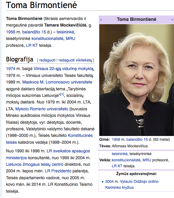 Taip rašoma buvusios Lietuvos Konstitucinio teismo teisėjos, buvusios Žmogaus teisių centro direktorės, buvusios prezidento Valdo Adamkaus patarėjos, teisės dėstytojos, dabartinės vaikų teisių žinovės Tomos Tamaros Birmontienės mokslinėje disertacijoje.