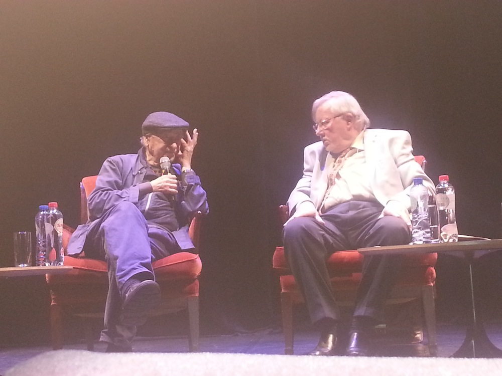 Spalio 17 d. vizualiųjų menu centre BOZAR įvyko J. Meko ir prof. V. Landsbergio pokalbis, kurį moderavo Nacionalinės dailės galerijos direktorė Lolita Jablonskienė ir meno kuratorius Liutauras Pšibilskis. Pasak išplatinto pranešimo, seni draugai viešą pokalbį surengė pirmą sykį. Pašnekesyje J. Mekas ir V. Landsbergis dalijosi „išgyvenimais...“ Štai taip.