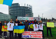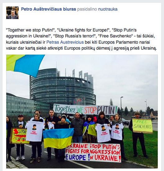 „Together we stop Putin!“, „Ukraine fights for Europe!“, „Stop Putin's aggression in Ukraine!“, „Stop Russia's terror!“, „Free Savchenko“ – tai šūkiai, kuriais ukrainiečiai ir badaujantis liberalas, dėl Ukrainos ir Lietuvos besiaukojantis europarlamentaras Petras Auštrevicius bei kiti Europos Parlamento nariai dar kartą siekė atkreipti Europos politikų dėmesį į agresiją prieš Ukrainą.