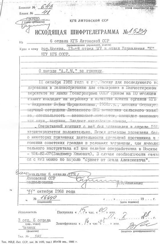 Šį kartą jūsų dėmesiui – dokumentai, liudijantys konservatorės, Europos Parlamento narės Laimos Andrikienės bendradarbiavimą su KGB.