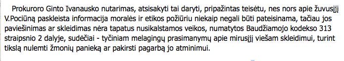 Tuos pačius įvykius primenančioje BNS ir lrytas.lt informacijoje paaiškinimas, kodėl žuvusiojo apšmeižimas nėra nusikalstamas, atrodo taip: