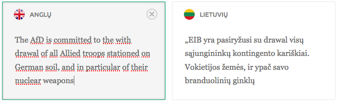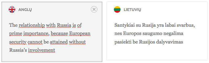 Žemiau pateikiamos R. Juknevičienės citatos verstos su naujausia Vilniaus universiteto „Anglų–lietuvių–anglų ir prancūzų–lietuvių–prancūzų“ kalbų mašininio vertimo, paremto statistiniais metodais, sukurta sistema.