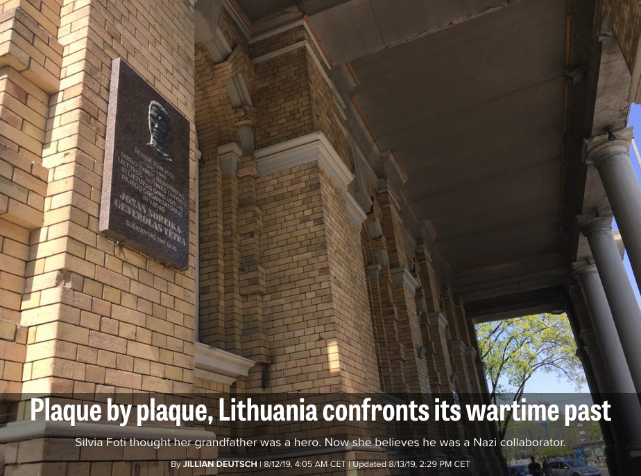 Su minėtu politico.eu straipsniu originalo kalba galima susipažinti čia – „Plaque by plaque, Lithuania confronts its wartime past“.