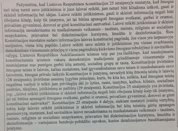 Tuo pačiu prokuro rašte priminti Lietuvos Respublikos Konstitucijos 25, 28 ir 29 straipsniai.