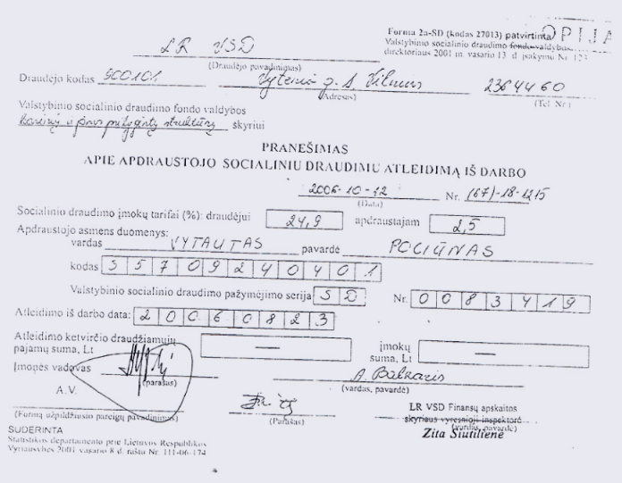 Antrojo dokumento data – 2006 m. spalio 12 d., t. y. jis rašytas praėjus pusantro mėnesio nuo pulkininko V. Pociūno žūties. Tai VSD pranešimas SODRAI apie žuvusio pareigūno „atleidimą iš darbo“: