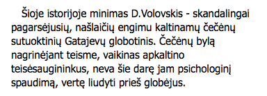 Ekspertai.eu skelbia filmuotą D. Volovskio liudijimą apie tai, kaip VSD prievartavo jį duoti parodymus prieš žmones, kurie žuvus tėvams jį priėmė į savo šeimą ir išaugino – kaip ir daugybę kitų Čečėnijos karo našlaičių.