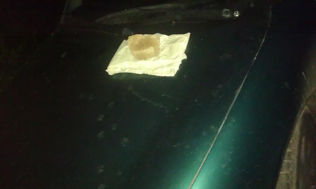 Bet galbūt tai ne grasinimas, o tik atsitiktinumas – tiesiog koks nors chuliganas ant kapoto padėjo plytos gabalą? Štai šitą: