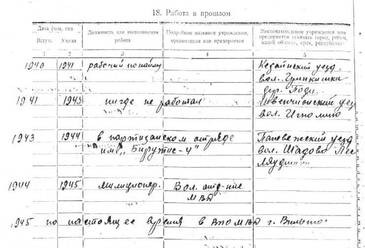 Dar vienas dokumentas, kur nurodytas „milicininko” darbas: