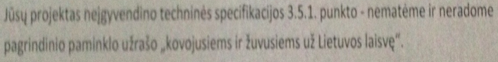 Taigi, projektą ministerijos komisija išbrokavo todėl, kad nerado užrašytų žodžių “kovojusiems ir žuvusiems už Lietuvos laisvę”.