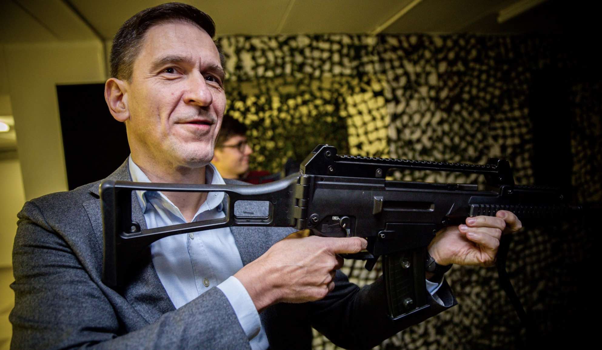 | Vienas iš Žmonių partijos lyderių, sektos „Opus Dei“ narys Dainius Kreivys mėgsta, kaip ir jo bendražygiai, palaikyti ginklą rankoje. Nuotr. facebook.com |