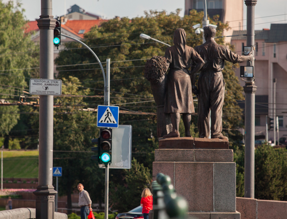 Uoliausi ir pavyzdingiausi Lietuvos skulptoriai „sąžiningai” sukūrė keturias skulptūrines kompozicijas Černiachovskio-Dzeržinskio tiltui jo iškilmingo atidarymo proga 1952-aisiais. Ir iki šiol jos kelia nuostabą jautresniam praeiviui savo ryškiai ideologiniu sovietų „naujo žmogaus” menu, taip pat vis dar kelia maištą tarp „saugančiųjų” ir „griaunančiųjų” skulptoriaus Broniaus Pundziaus rusų karius „Taikos sargyboje”, Juozo Mikėno ir Juozo Kėdainio tarybinius studentus „Mokslo jaunimas”, Napoleono Petrulio ir Broniaus Vyšniausko komunizmo statytojus „Pramonė ir statyba”, Bernardo Bučo ir Petro Vaivados tarybinių ūkių darbininkus „Žemės ūkis”.