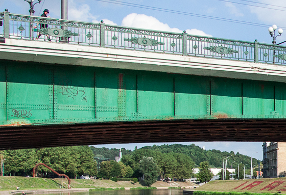 | Juodas 1952-ųjų tiltas (aut. G.Popovas, 1952 m.) nuo 1993 metų pažaliavo |