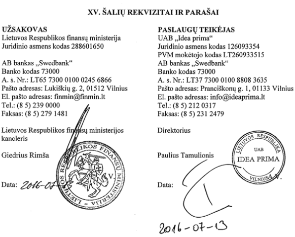 O čia paskutinė pasirašyta Finansų ministerijos sutartis, kurioje galima pamatyti, kas tokias sutartis ministerijos pasirašinėja: