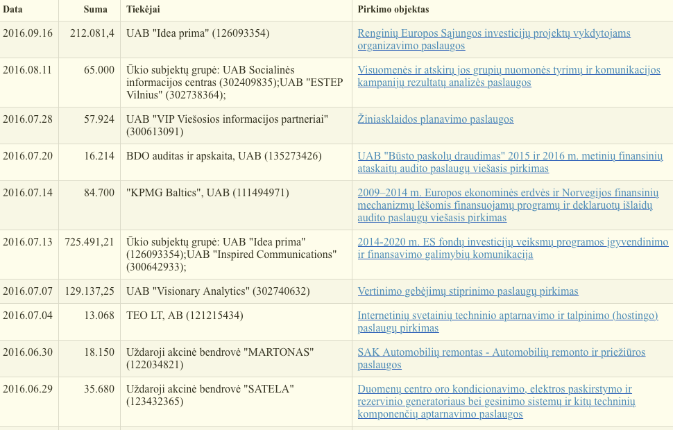 Viso nuo ministrės kadencijos pradžios birželio mėnesio, ministerija pasirašė 10 viešųjų pirkimų sutarčių, štai jų sąrašas:
