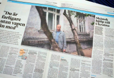 Jonas Ohmanas kalba savu šiaurietišku Norlando (viena iš trijų tradicinių dabartinės Švedijos žemių, apimantis Švedijos šiaurinę dalį – red. past.) akcentu, yra pavargęs. Jis gyvena tarp Ukrainos ir Lietuvos, o kita kelionė – vos po poros dienų. Biure mėtosi padėkos diplomai iš Ukrainos „Blue/Yellow“ tinklui ir jam už asmeninę pagalbą kovojant dėl ukrainiečių tautos laisvės.