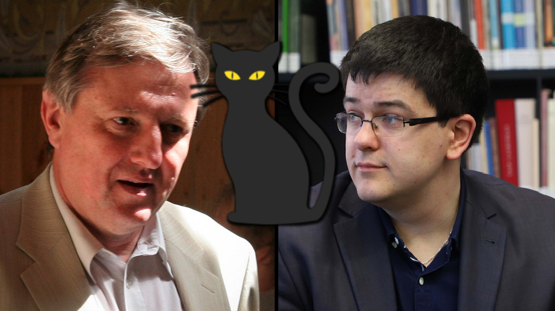 | R. J. Dagys ir V. Sinica (viduryje juoda katė). |
