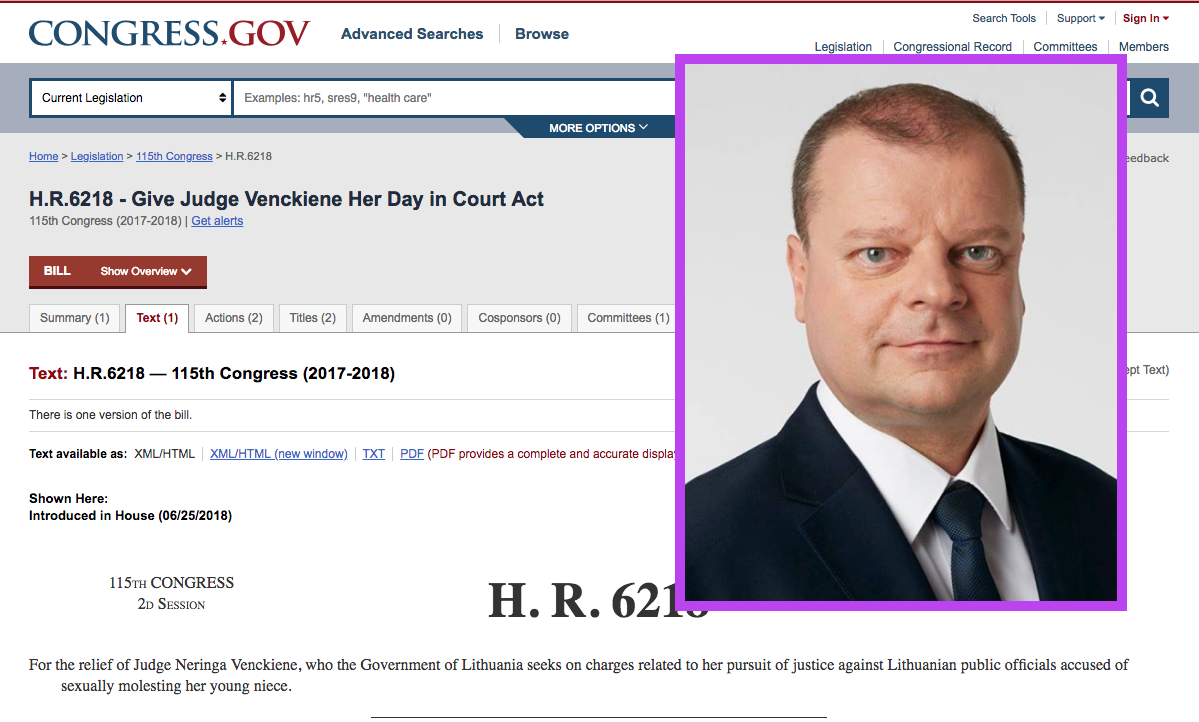 | JAV kongreso tinklalapio fragmentas ir Lietuvos premjeras Saulius Skvernelis vis dar neviešinantis, ar Deimantė Kedytė gyva, kokia jos sveikatos buklė, ar mirusi. |