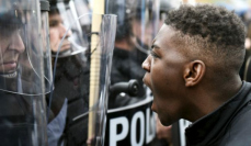 Daugiau nei tūkstantis demonstrantų išėjo į Baltimorės gatves išreikšti protesto dėl juodaodžio mirties, kurį policija buvo sulaikiusi prieš savaitę.
