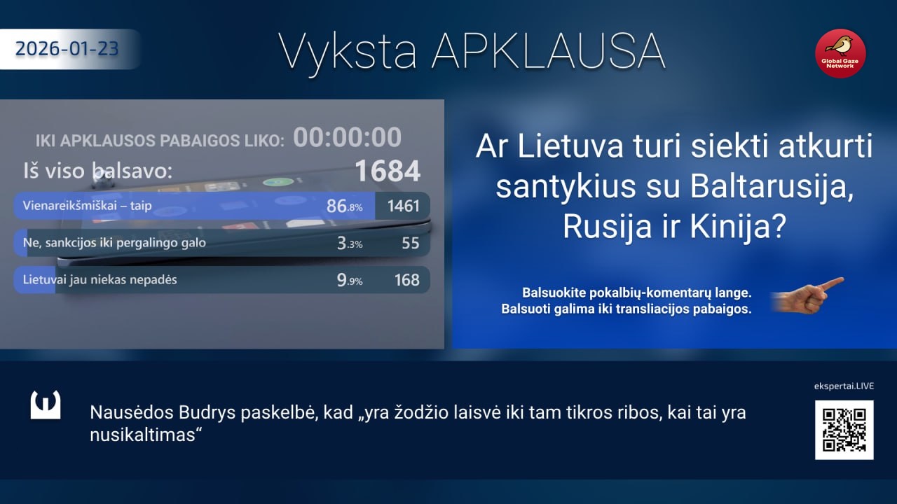 Ar Lietuva turi nedelsdama atnaujinti tamprius ekonominius ir diplomatinius santykius su Baltarusija, Rusija ir Kinija, atkurti puikiai veikiančius komunikacijos kanalus ir tuo pat metu siekti, kad karas Ukrainoje būtų kuo greičiau nutrauktas ir įsivyrautų ilgalaikė taika? Jei taip, Lietuvai reikalingas naujas vadas, nes senasis jau savo padarė. Jei ne – nieko daryti nereikia.