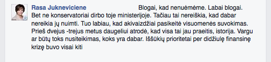Nekomentuosime konservatorės tipinės konservatoriškos logikos, kad nesvarbu, kas buvo valdžioje, svarbu, kad valdantieji toje ministerijoje tuo momentu nedirbo.