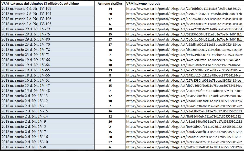 Ar žinote, jog tuo metu kai žadame dvigubos pilietybės įteisinimą, tūkstančiams ji jau seniai dalinama? Ar žinote, jog vien šiemet dvigubą LT pilietybę gavo 378 (1 foto), o vien 2017 metais - 2337 asmenys? Ar žinote kas jie tokie?