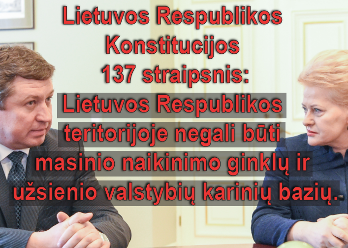 Jokios, net menkiausios problemos nebūtų, jei Seimas pirmiausia būtų pasirūpines LR Konstitucijos 137 straipsnio pakeitimu ir jame įrašytų, jog užsienio valstybių karinės bazės ar masinio naikinimo ginklai Lietuvos teritorijoje gali būti.