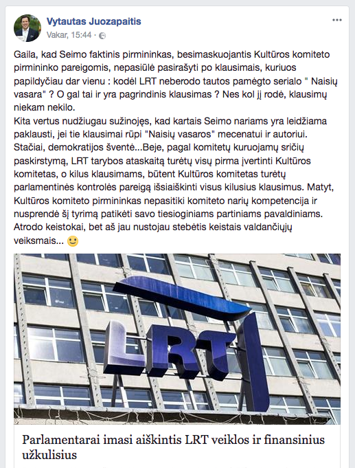 Visa tai puikiai supranta aukštaūgis, aštrialiežuvis LRT generalinis direktorius