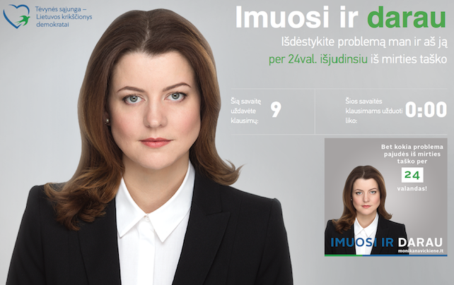 „Geros naujienos vilniečiams – dalykai vyksta ir jie vyksta dideliu greičiu. Išdėstykite problemą www.monikanavickiene.lt ir sulaukite pagalbos jau po 24 valandų“, - skelbiama partijos facebook paskyroje.