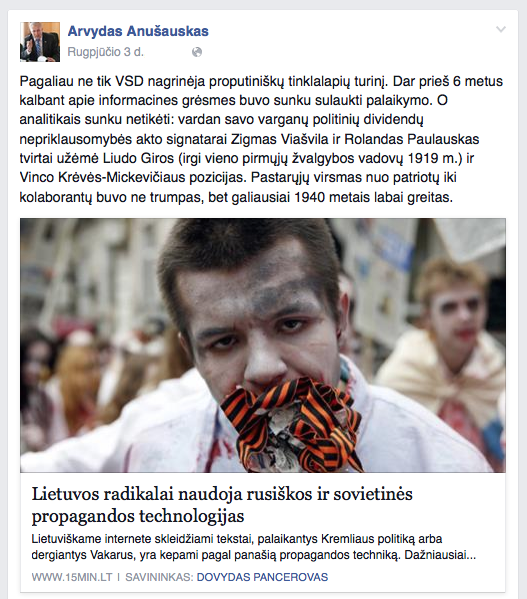 Konservatorius savo asmeninėje facebook paskyroje pasidžiaugė, kad nuo šiol „pagaliau ne tik VSD nagrinėja proputiniškų tinklalapių turinį“, bet tai už valstybės pinigus atlieka ir konservatorių partijos lyderio, europarlamentaro Gabrieliaus Landsbergio įsteigta viešoji įstaiga „VšĮ „Informacinio saugumo ir analizės centras“.