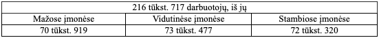 Bet tiek to. Pažvelkime nors į tai, tarp kokio didumo įmonių ši didžiulė (daugiau kaip 200 tūkst. galvų!) minia pasiskirsčiusi. Nes tai, ką mums davė autorius – tėra abstrakcija. Kadangi 2018-iems skaičių dar nėra, pasinaudosime 2017 m. duomenimis [4]. Vaizdą gauname tokį: