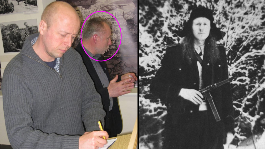 | LGGRC darbuotojas Vytas Lukšys (galva pažymėta violetiniu apskritimu). Dešinėje – Lietuvos didvyris Antanas Kraujelis-Siaubūnas. |