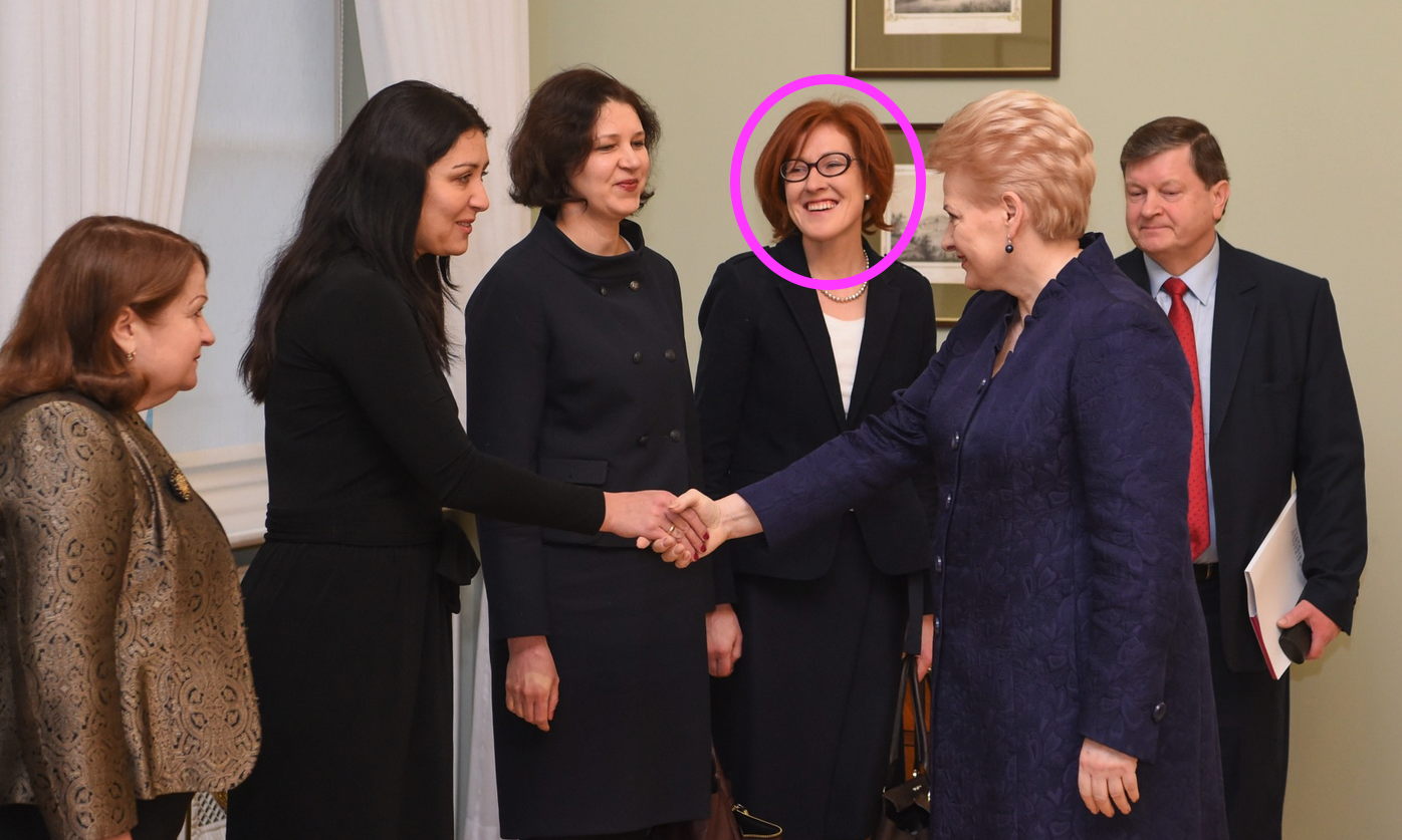 | Melagė, Lietuvos vyriausybės atstovė Europos žmogaus teisių teisme (EŽTT) Karolina Bubnytė (galvutė apibraukta violetiniu apskritimu) visomis išgalėmis gina banditus. Nuotr. prezidentas.lt |