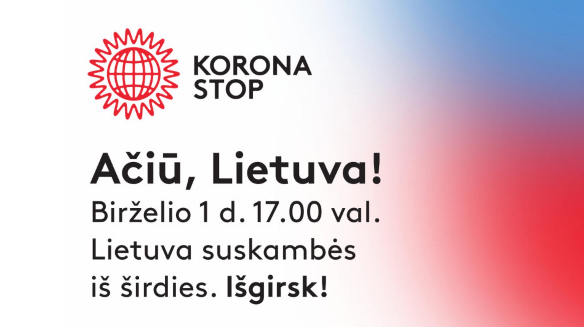 Šia akcija bus dėkojama Lietuvos žmonėms už sėkmingai įveiktą pirmąją COVID-19 bangą ir raginama išlaikyti susitelkimą bei viltį, kad ryžtingai būtų įveikti ir kiti ateityje dar laukiantys iššūkiai.