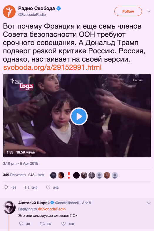 „Štai taip atrodo gyvulio Asado panaudotas cheminis ginklas Sirijoje. Kadangi Putinas viską žino ir tai daro kartu su Asadu, mes turime pradėti mokyti savo žmones, kaip elgtis cheminės, bakteriologinės ir kitokios masinio naikinimo ginklo atakos metu“, - visuomeniniuose tinkluose atskleidė R. Juknevičienė.