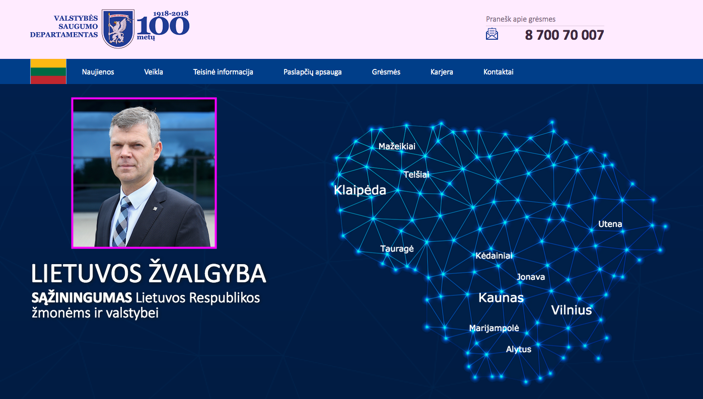 | VSD internetinio tinklalapio fragmentas – violetiniame stačiakampyje įstaigos vadovas Darius Jauniškis. |