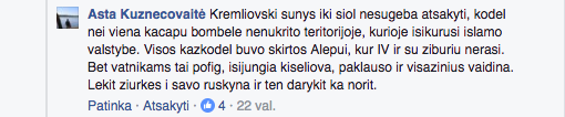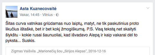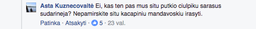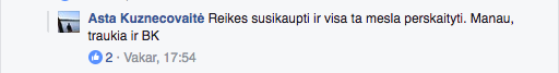 Mano facebook'o draugės ir „Lietuvos ryto“ žurnalistės Astos Kuznecovaitės reakcija buvo tokia, kad negaliu ja nepasidalinti ne tik facebook'o svetainėje.