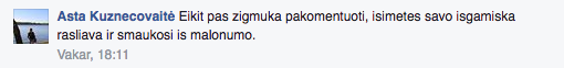 Štai ši reakcija Astos Kuznecovaitės ir Zigmo Vaišvilos facebook'o paskyrose: