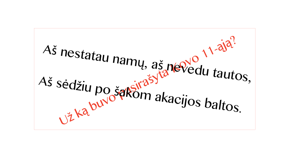 Artėja Lietuvos dvidešimtpenkmetis ir šimtmetis. Bus pažymėta, paukščiukai gražiai sudėti. Tą dieną paminėsime, vainikus nuneš, kreipsis į dangų, nusifotografuos ir susitapatins su idėjos ir darbų atlikėjais, pasakys gražius žodžius parinkti tie, kurie apie šunybes nekalbės ir džiaugsis valdžios darbais. Jeigu bus taip kaip visada, signatarai tylės žodžiu ir raštu, rimtai sėdės Kovo 11-osios salės garbingoje vietoje, t. y. bus patenkinti esama valstybės išformavimo tendencija, nulenks galvas minėtiems naujosios tvarkos Vakarų galingiesiems, risis pagal 55 tūkst. ES valdininkų nuorodas ir vaizduos savo istorinį reikšmingumą. Tyla - bloga byla ir netikėjimo ženklas. Privalu apsibrėžti. Jei nėra laisvės ir teisingumo tikėjimo troškulio, nelieka praeities svarbos, o ar gali būti gerbiamas besimėtantis pirmyn ir atgal žmogus matydamas kas vyksta ir nieko nedarantis? Kartais pagalvoju, ką šiandien mums pasakytų Seimo tribūnoje J. Basanavičius, Vaižgantas ar Maironis, žinoma, jeigu jiems būtų leista kalbėti, plenarinio posėdžio pustuštėje salėje apie lietuvių kultūros istorinį virsmą. O gal poetas H. Radauskas seniai seniai nujautė mūsų netikrumą, metamorfozę, blaškymąsi ir paskyrė tokias eiles lietuviams: