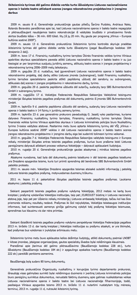 Kaip viešai savo tinklapyje (www.prokuraturos.lt) informuoja Generalinė prokuratūra, ikiteisminio tyrimo eigos atskiri veiksmai atrodė taip: