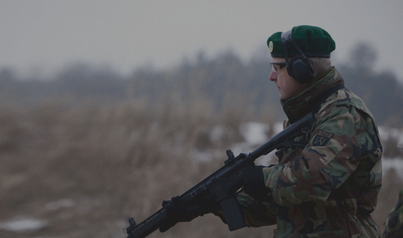 | Šaulių sąjungos narys pratybų metu. |