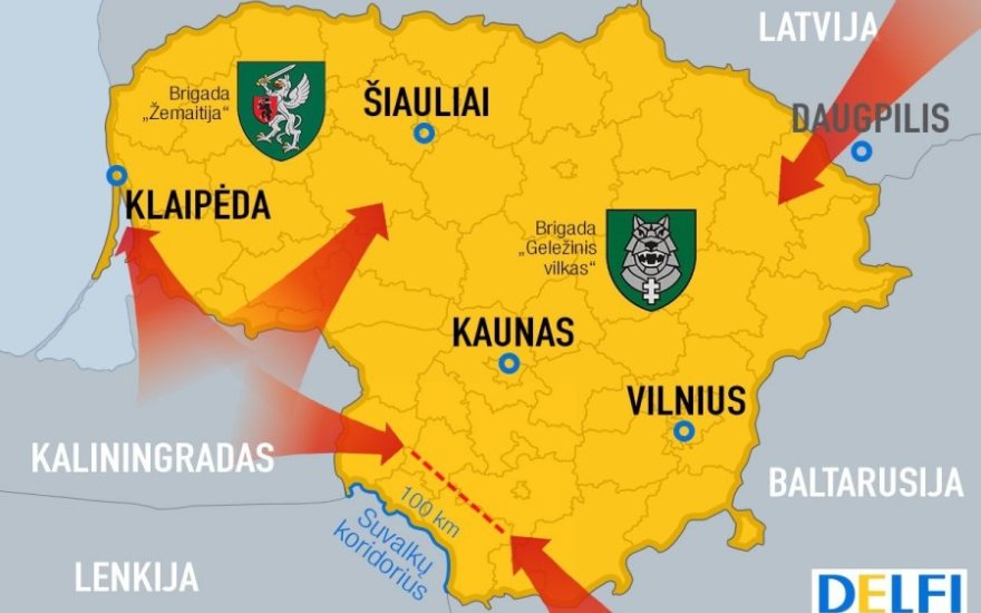 | Paviešintame delfi.lt plane matosi, kad Rusija, pasitraukus amerikiečiams, Lietuvą iš karto vienu metu pultų penkiomis kryptimis. |