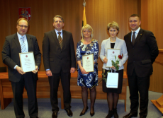 Pirmąja „Metų prokurore“ tapo Panevėžio apygardos prokuratūros prokurorė Nida Grunskienė (nuotr. antra iš dešinės), antrosios vietos laimėtoja – Kauno apygardos prokuratūros prokurorė Nomeda Urbonavičienė (nuotr. trečia iš dešinės), trečiąją vietą laimėjo Generalinės prokuratūros prokuroras Artūras Urbelis (nuotr. pirmas iš kairės).