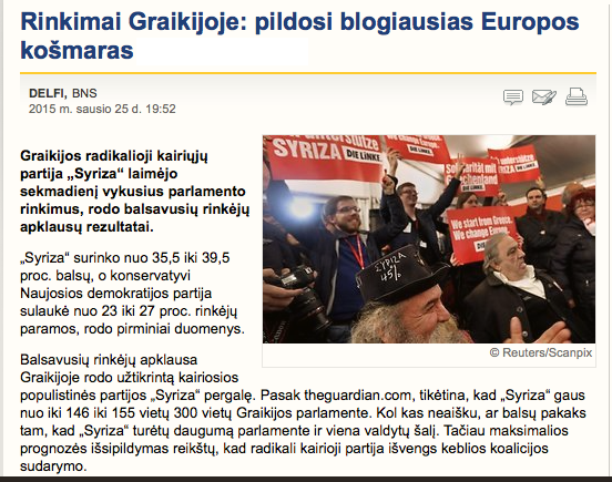 Konservatorė Rasa Juknevičienė savo facebook paskyroje taip pat pasidalino komentaru apie šią Europą ištikusią bėdą: „Graikija išsirinko. Šiame straipsnyje - apie tai, ką išsirinko. Kremlius neabejotinai turės draugą prie ES stalo.“