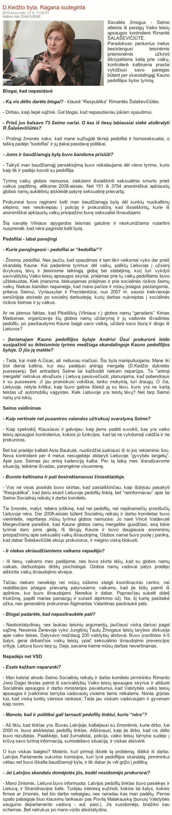 Manau, kad čia pasakojama apie tai, ką Šalaševičiūtė atvirumo akimirką nuoširdžiai pasigodojo. Tačiau, po to buvo gerai "paauklėta" ir kartu su Šiauliene inicijavo įstatymo projektą, kad tokių atvirumų daugiau neskleistų niekas - nei žurnalistai, nei liudininkai, nei Seimo nariai, nei visokių teisių apsaugos tarnybos.