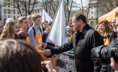 Premjeras taip pat pristatė savo indėlį į „Dovana Lietuvai“ projektą – Lietuvos trispalves vargingai gyvenančioms šeimoms, kurias įteikė Savivaldybių seniūnų asociacijos prezidentui Kęstučiui Vilkauskui su prašymu perduoti seniūnijose esančioms šeimynų sodyboms.
