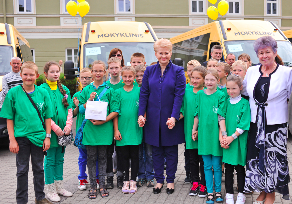 Lietuvos Respublikos prezidentė Dalia Grybauskaitė sostinės S. Daukanto aikštėje šalies moksleiviams padovanojo net 42 naujus autobusiukus, kurie skirti Lietuvos moksleivių tobulėjimui.