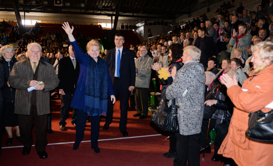 „Prezidentei įkvėpus oro pirmam sveikinimo sakiniui, staiga nukrito už jos nugaros prezidentinė-vytis raudoname fone-vėliava. Aplink mane stovintys žmonės sušurmuliavo, kad tai blogas ženklas prezidentiniams rinkimams, kai kurie garsiai klausė, kažin kodėl taip atsitiko. Prezidentė iš pradžių nepasimetė ir nepradėjusi sveikinimo kalbos apsisuko ir nuėjo pakelti vėliavos. Tačiau kai grįžo ir skaitė sveikinimą, jaudulys padarė savo: balsas buvo bejausmis, skaitymas - valdiškas“, - teigė konservatorius.