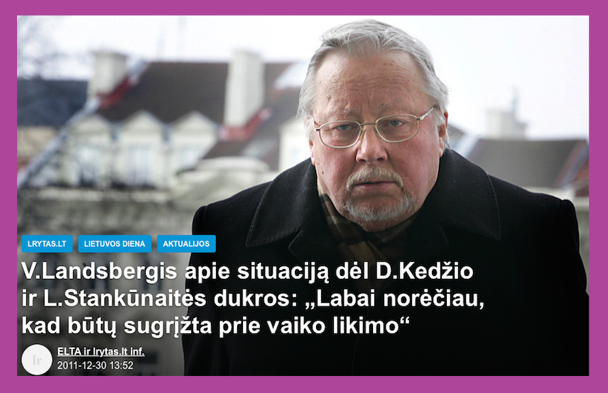 Lygiai prieš 5 metus tuometinis europarlamentaras, konservatorius Vytautas Landsbergis informavo, kad „Drąsiaus Kedžio ir Laimutės Stankūnaitės dukra nėra daiktas – vaikas irgi turi savo teises, netgi tokio amžiaus“.