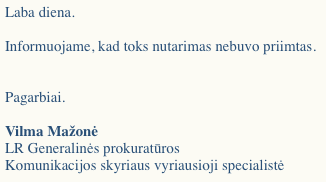Šiuo konkrečiu atveju turime situaciją, kai jau 8 mėnesius nežinia kur esančiai Seimo narei žiniasklaidos priemonė nepagrįstai metė įtarimus labai sunkiu nusikaltimu, formuodama neigiamą nuomonę apie asmenį, kuris neturi galimybės apsiginti.